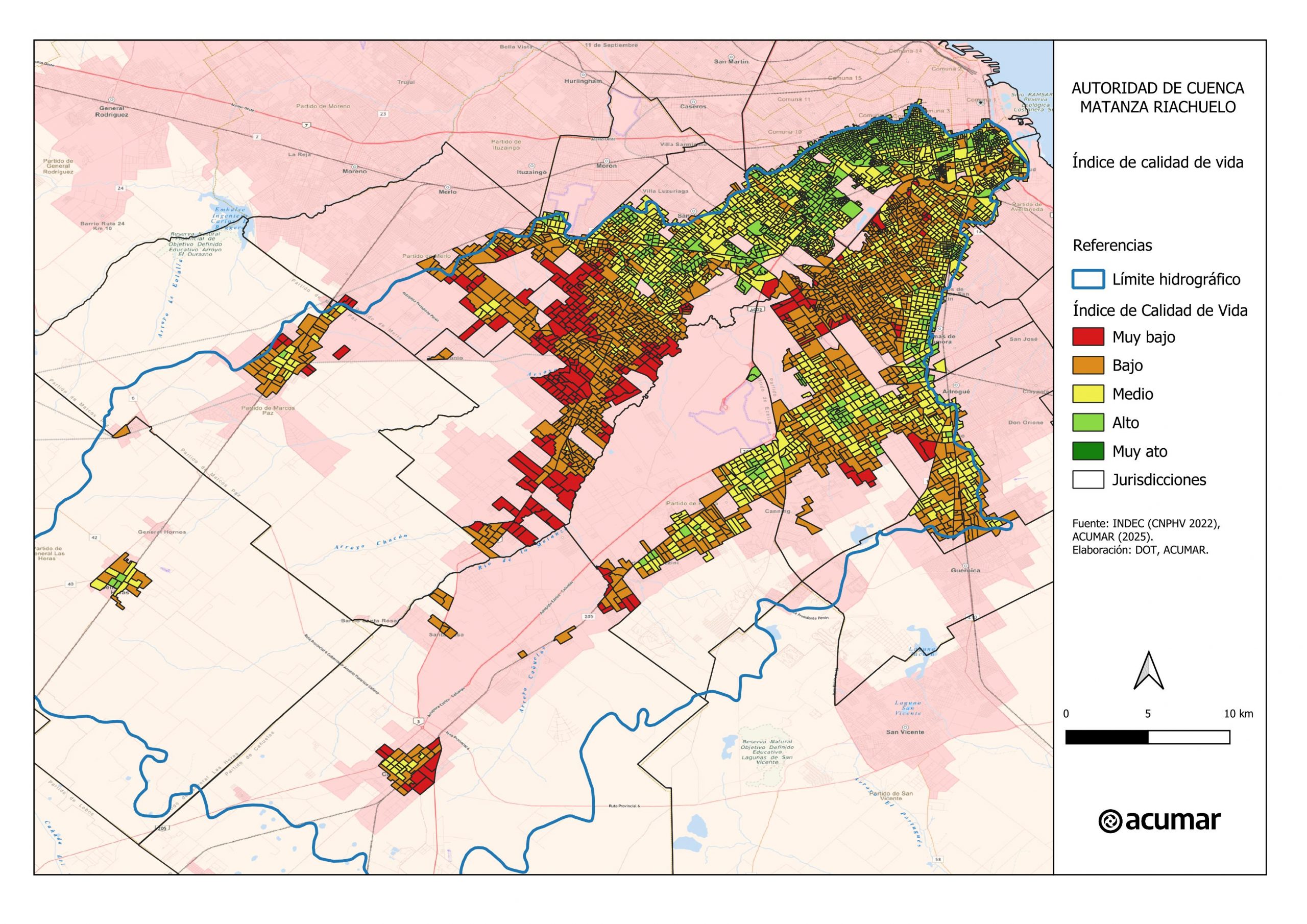 Esta actualización del ICV, elaborada a partir de la información provista por el Censo Nacional de Población, Hogares y Vivienda (CNPHV) efectuado en 2022, permitió profundizar la caracterización territorial de las condiciones de vida de la población residente en la Cuenca Matanza Riachuelo.