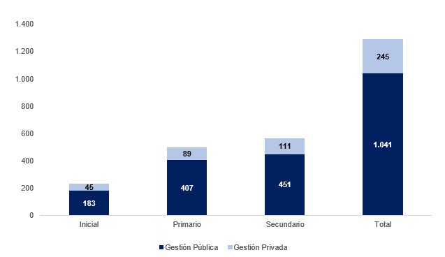 Considerando el acumulado de inscripciones previas, el 24,06% de las 5.345 escuelas radicadas en la Cuenca fueron alcanzadas por el Programa, siendo el 80,9% de las mismas de gestión pública.