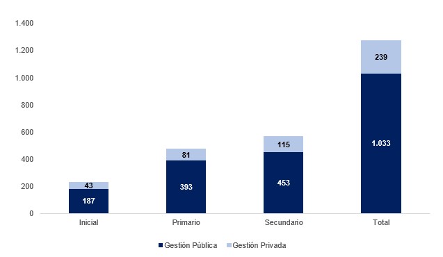 Considerando el acumulado de inscripciones previas vigentes, el 24% de las 5.345 instituciones radicadas en la Cuenca fueron alcanzadas por “Escuelas por la Cuenca”, siendo el 81% de las mismas de gestión pública.