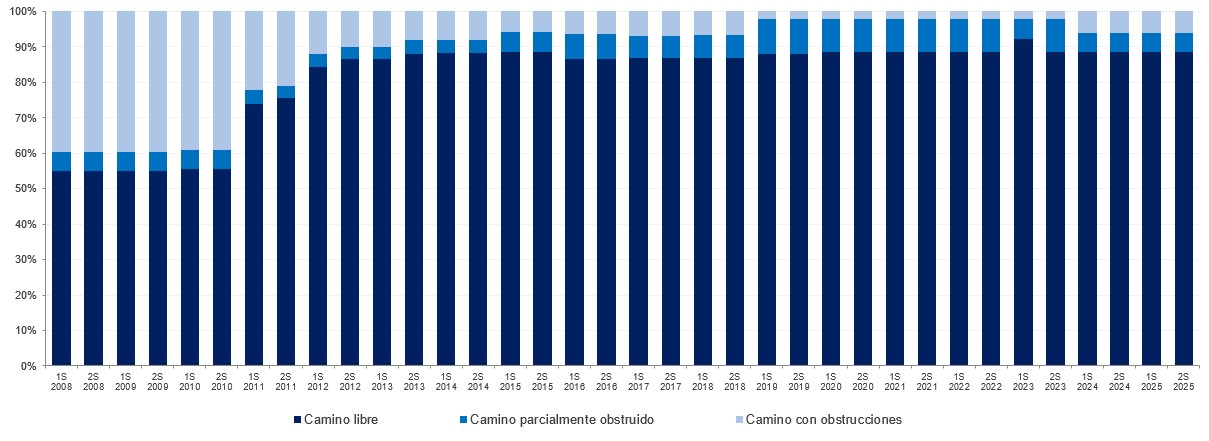 Al segundo semestre de 2025, la liberación del Camino de Sirga alcanzó un 89% de cumplimiento. El porcentaje restante se halla obstruido parcial (9%) y/o totalmente (2%).