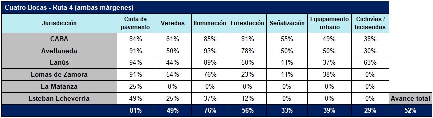 En lo relativo a la consolidación, se encontraba en un 52% de avance hasta Ruta 4 y en un 62% hasta Puente La Noria (ambas márgenes).